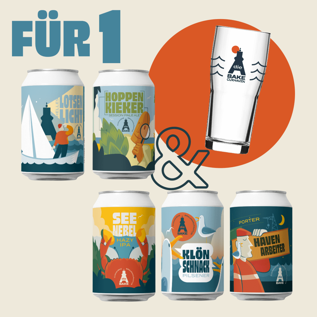 Unser Bake-Bier-Paket versorgt dich mit allen fünf Havenbieren, den passenden Stickern, Bierdeckeln und Infoflyern!