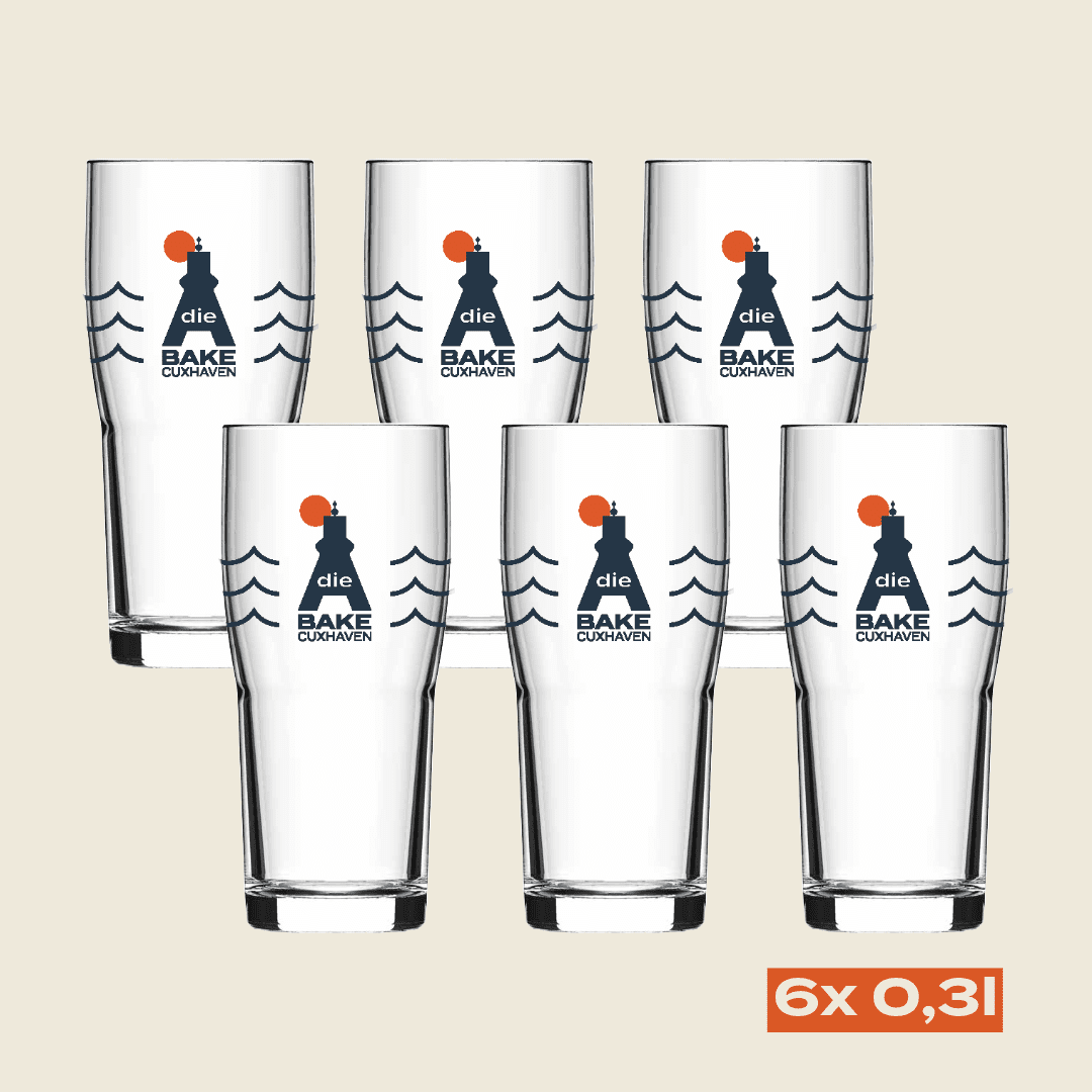 Bake Glas in 0,3l Größe mit rundum gedrucktem Wellenmuster